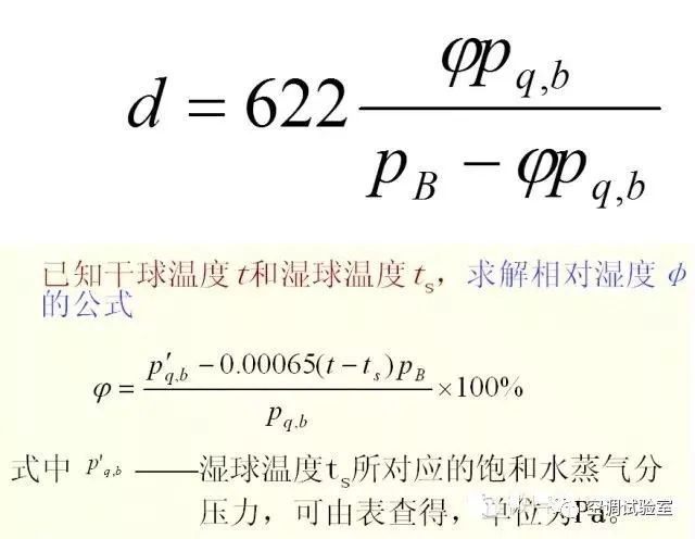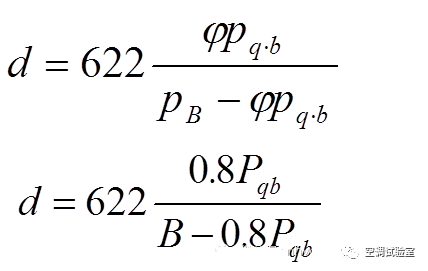 已知干球温度t(饱和水蒸气分压力Pq,b)和相对湿度φ,求解含湿量d的公式: