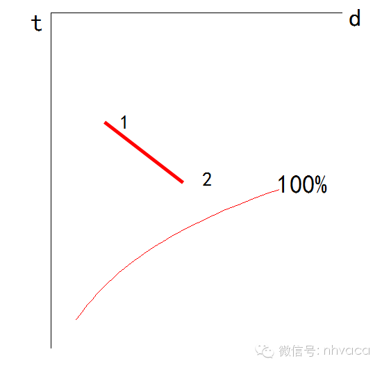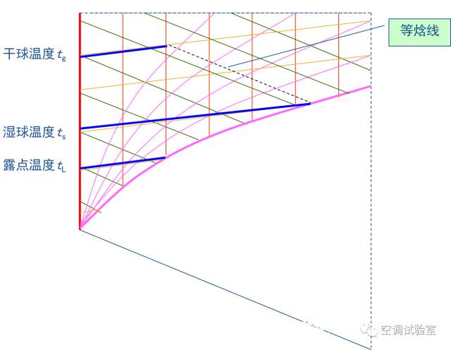 等含湿量线就是等露点温度线。因为露点温度的定义已说明含湿量相同的状态点,露点温度均相同。
