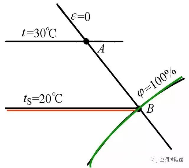 在焓湿图上用45°直线A-E表示。