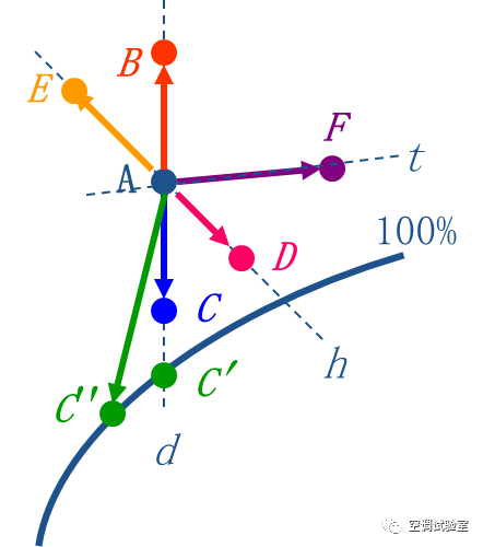 等焓减湿过程 A→E