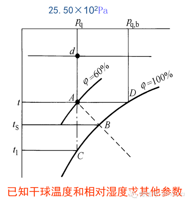 压力:大气压力B、水蒸气分压力Pq、饱和水蒸气分压力Pq,b。