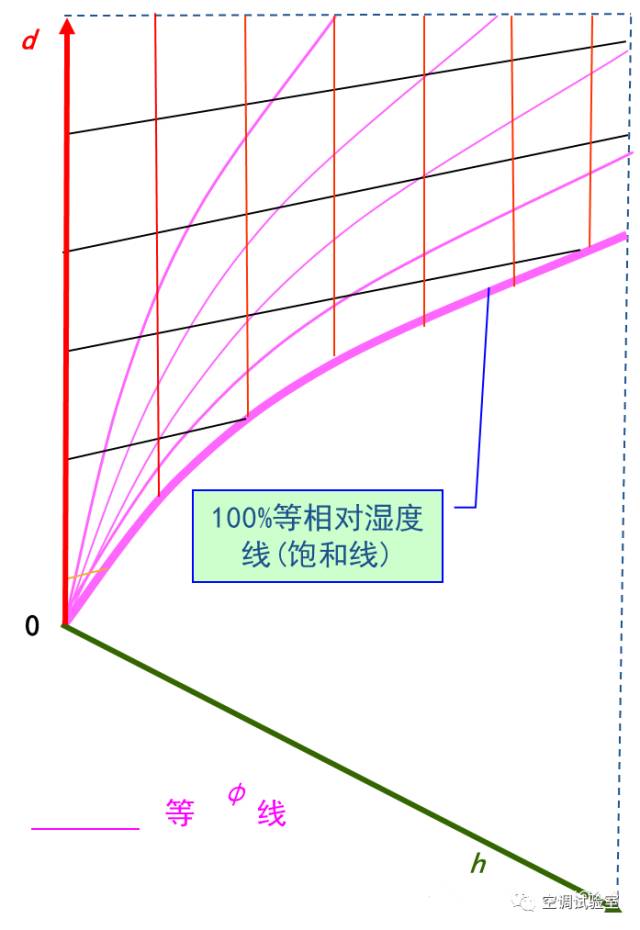 ② 垂直的等含湿量线;