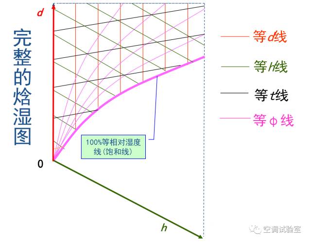 焓湿图看上去比较复杂,实际上只有6种线条: