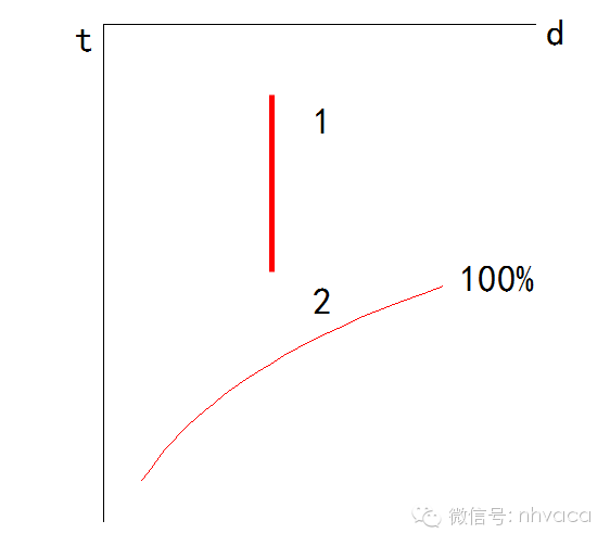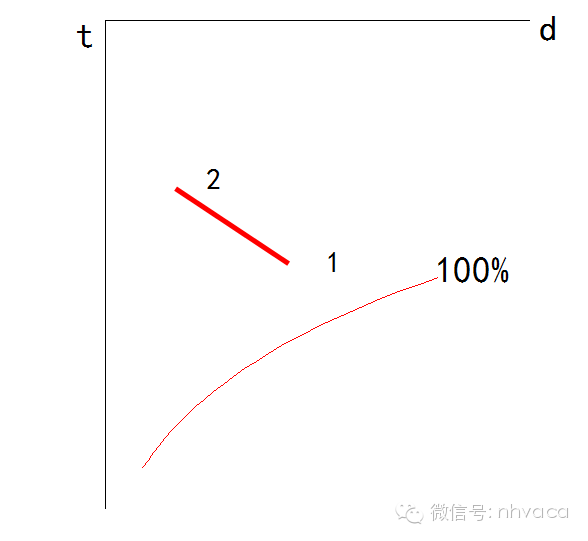1)饱和空气线即相对湿度为100%的等相对湿度线,见上图中最右下方的弧线。
