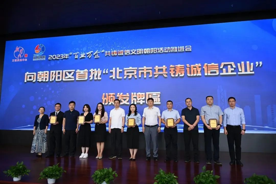 近日,在由首都文明办、市经济和信息化局等八部门联合主办的首届“百业万企”共铸诚信文明北京活动中,朝开公司被授予“北京市共铸诚信企业”奖牌。