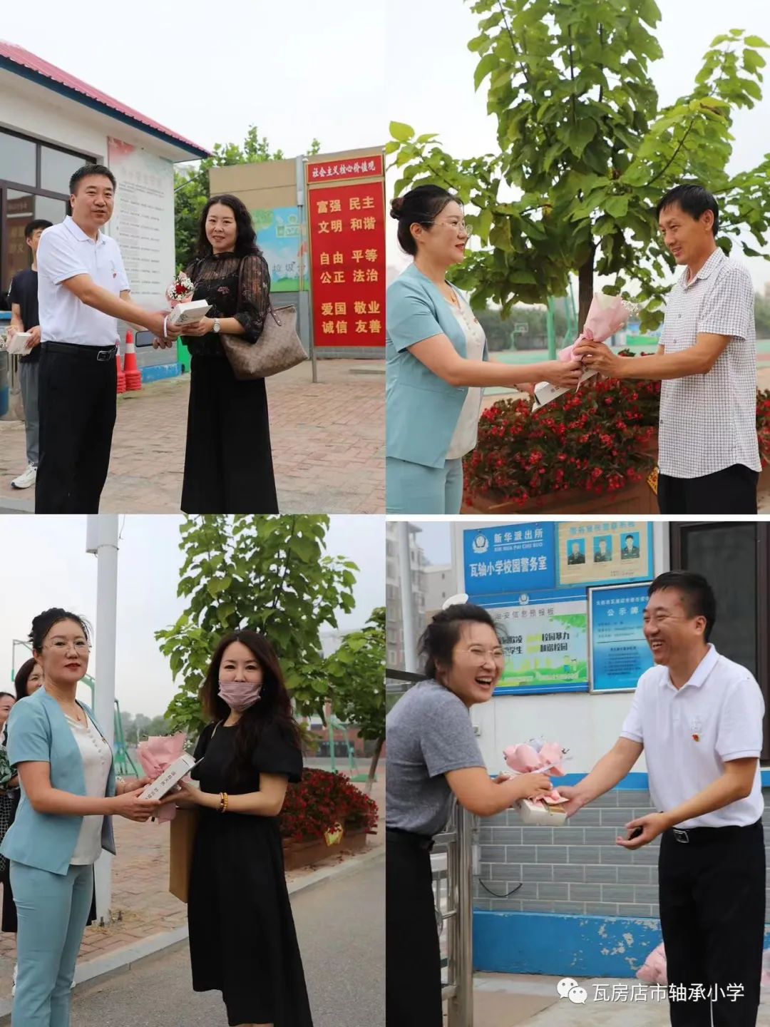 金秋九月结硕果,桃李芬芳正此时,在全国第39个教师节来临之际,我校党总支部书记刘世洲同志,校长赵海蓉同志携全体领导早早来到学校,精心准备,为全校教职员工送上了最暖心的祝福,刘书记、赵校长对全体教师寄予了很大的期望,领导强调我们学校教师要坚持为党育人,为国育才,以德施教,立德树人,要把自己的温暖和情感倾注到每一个学生身上,做党和人民满意的四有好老师!