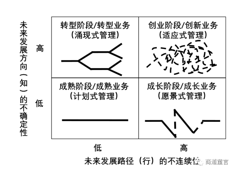 越来越多的中国企业正在积极探索生成式人工智能技术,并开始应用大型语言模型来实现更多的创新和效率提升。企业方既需看到明确的方向,也应在过程中谨慎探索,例如选择一些低风险领域进行可行性评估,再开展生成式人工智能试点,探索创新潜力。人工智能的普及性应用之所以刚刚开始,是因为挡在人工智能理论和实践之间巨大的算法、算力和数据鸿沟最近才得以突破。而在此次突破中扮演关键角色的英伟达公司的股价最近一段时间一路狂飙,全球范围内仍然一卡难求。众多创业公司乃至互联网大厂纷纷表示要All-in生成式人工智能,但真正能够做到的却寥寥无几。这也反映了知行合一之间差异,以及企业计划制定和执行之间的不连续性。从现在到未来有很多路径,选择哪条路径是“知”所决定的,“知”从不确定性到确定性的提升,可以帮助人们选择自己认为的最佳路径,但现实中的路径是否走得通,则需要克服未来路径上的不连续性。在未来发展方向不确定性高、未来发展路径不连续性也高的情况下,事物的发展处于混沌状态,企业大多采取适应式管理,在众多发展方向中进行排除,试图找到适合自身资源和能力条件的发展方向,并将有限的资源和能力押注在此发展方向上,力图实现发展路径的突破,进入成长阶段。成长阶段的企业往往采取愿景式管理,总有企业能够克服发展路径上的不连续性,实现自己的愿景,进入发展方向不确定性低、发展路径不连续性低的阶段,并开始采取计划式管理模式,尽力让自己的发展方向稳定下来,让自己的发展路径持续下去。然而当企业面临剧烈变化时,便不得不重新进行选择,以适应发展方向不确定性升高的外部环境。在数字经济应用实践专家骆仁童博士看来,企业在探索生成式人工智能技术时,应该注重知行合一。这意味着企业需要将理论知识与实际应用相结合,以确保创新和技术的有效应用。同时,企业在选择发展方向时应谨慎行事,通过可行性评估和试点项目来降低风险。此外,企业还需要关注未来发展路径上的不连续性问题,并在面对剧烈变化时灵活调整策略。