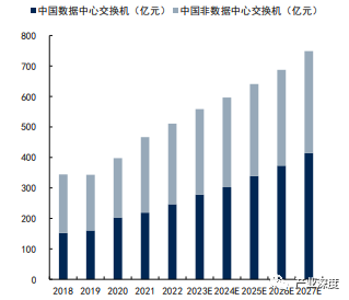 图表28:2018-2027年我国交换机市场应用结构规模(单位:亿元)