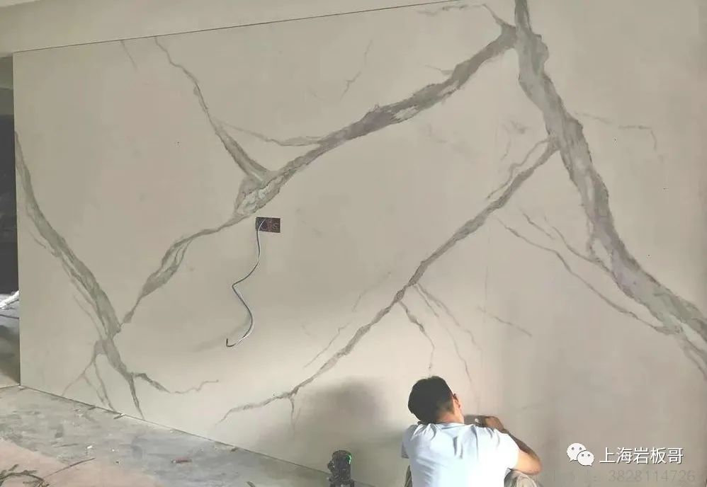 5. 大岩板背涂:将涂有胶粘剂的大岩板按照设计要求背贴在基层上,并进行调整和固定,确保板材的稳固性和平整度。