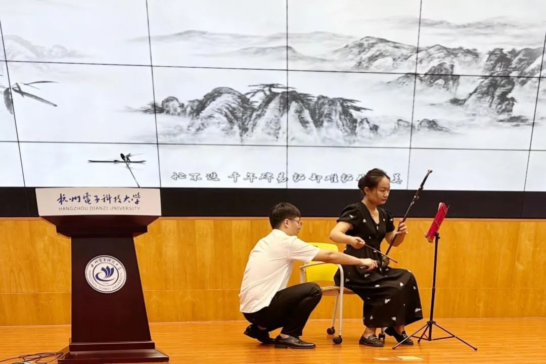 见面会上新生代表林琛轩、郑翰演唱《小幸运》、嘉宾叶含冰演唱《光年之外》、研究生新生辅导员老师顾倩芸老师二胡演奏《兰亭序》,向同学们的到来表示热烈欢迎。