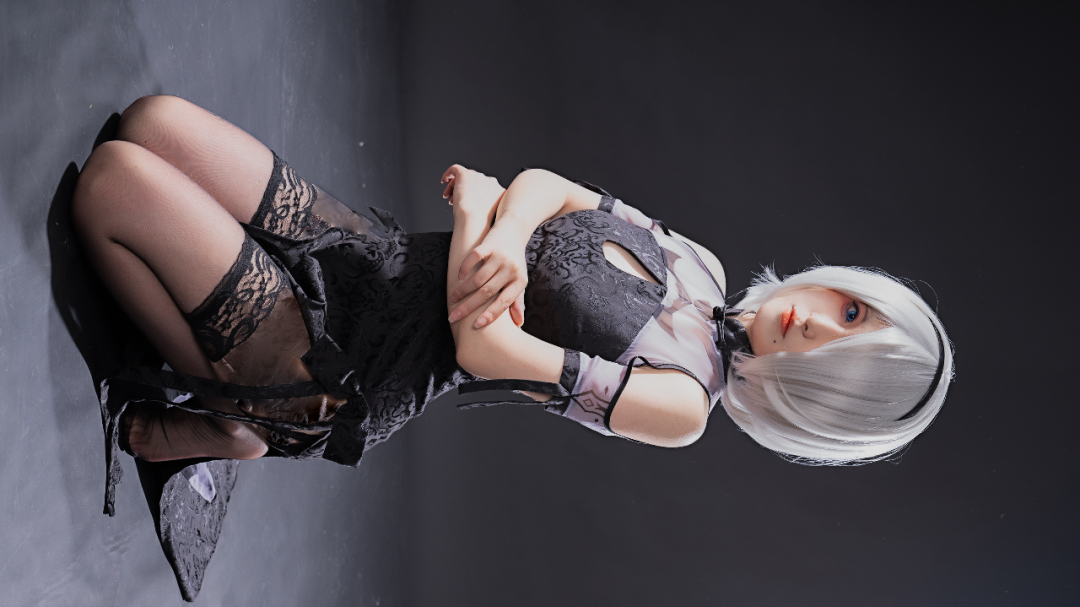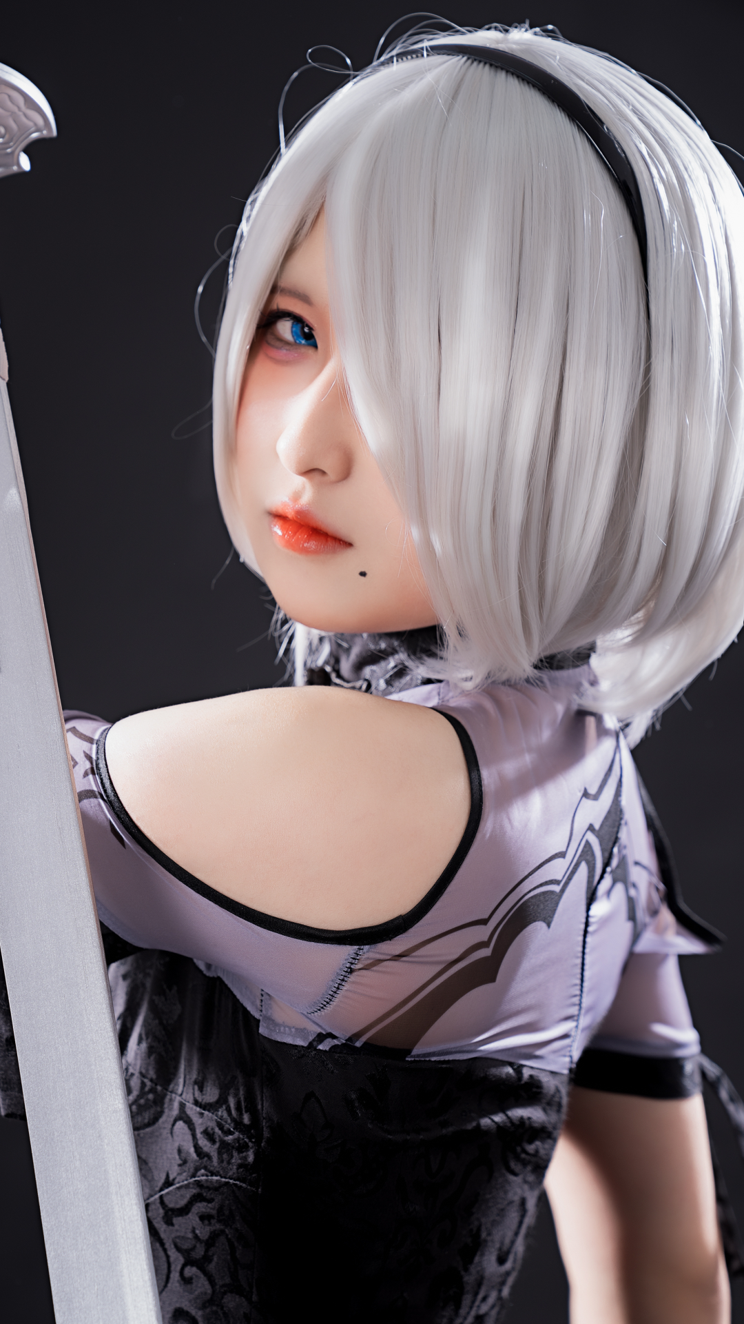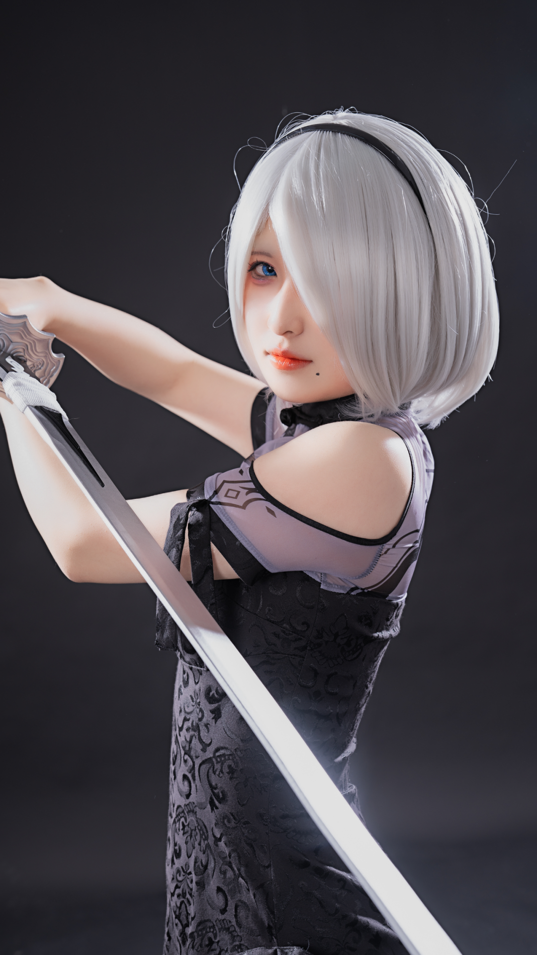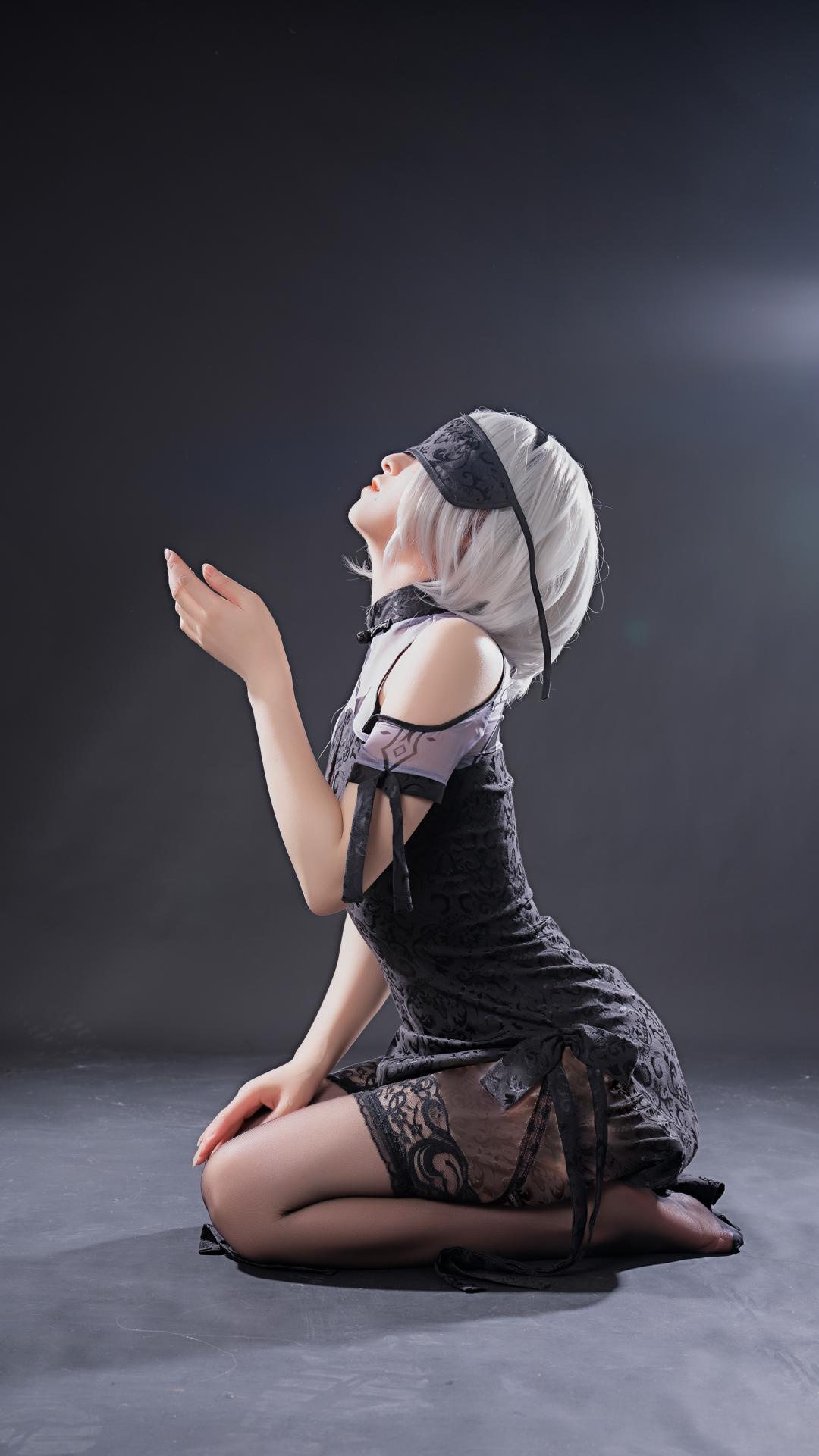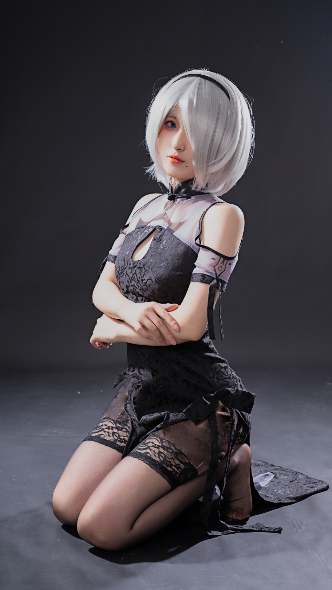 尼尔机械纪元-2b旗袍cosplay正片,玫瑰色的唇角旁还有一颗美人痣