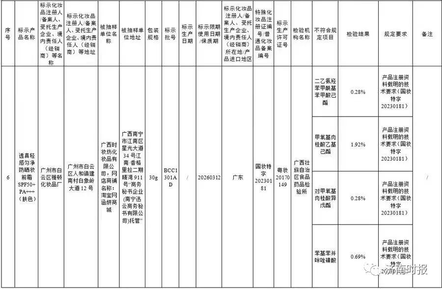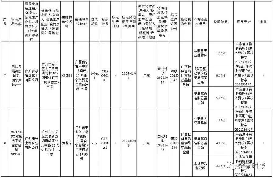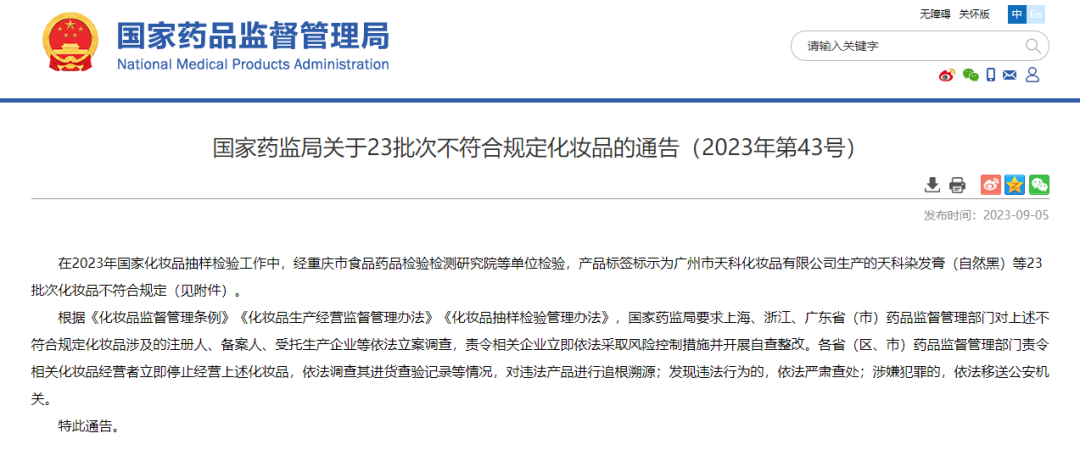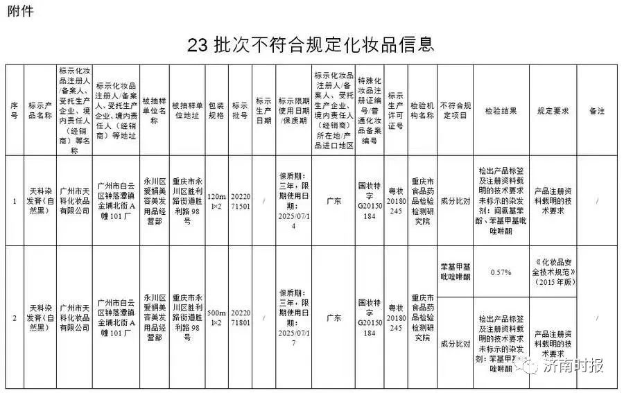 据悉,在2023年国家化妆品抽样检验工作中,经重庆市食品药品检验检测研究院等单位检验,