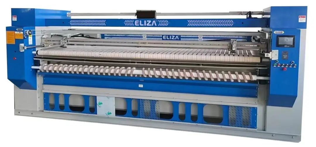 双变频调速,速度风力自控,双面毛刷展平,床单被套效果好,带机械手夹布自动居中功能,带液晶显示计数功能,增加压辊,平整度好,效率高