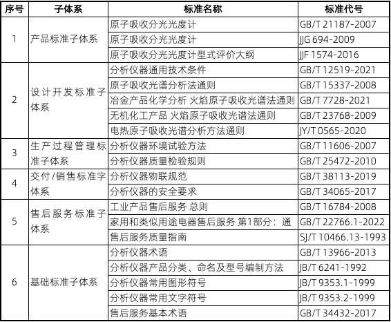 导读:分析仪器企业标准体系表的构建需要了解业内的研究与进展。构建分析仪器企业标准体系表需要了解分析仪器的标准体系标准化基础,分析仪器种类很多,通过对原子吸收分光光度计产品的标准体系构建举例,我们能够对分析仪器企业标准体系的构建有一个直观的了解。