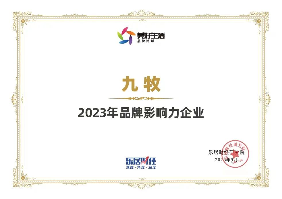 9月7日,在2023(第六届)乐居财经年度论坛上,九牧凭借卓越的全球品牌影响力与标杆实力荣获“2023年品牌影响力企业”。