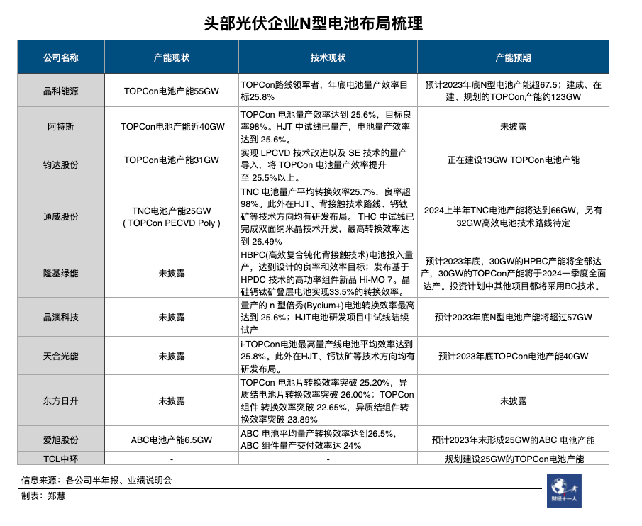 一位业内人士对《财经十一人》表示,今年TOPCon组件出货量预计约120GW,电池片产量约140~150GW,而年底落成的400多GW产能,在明年量产规模上来后,将会对P型电池产生挤压。