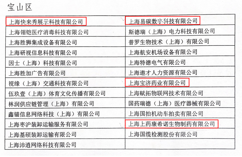 近日,上海市人力资源和社会保障局、市总工会、市企业联合会/市企业家协会、市工商业联合会联合发布“上海市和谐劳动关系达标企业”称号授予名单,宝山区25家企业荣获“上海市和谐劳动关系达标企业”称号,宝山区工商联4家执常委企业荣获此称号,它们分别是上海快来秀展示科技有限公司、上海易碳数字科技有限公司、上海宝济药业有限公司、上海上药康希诺生物制药有限公司。