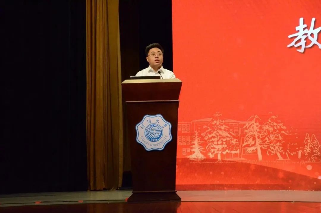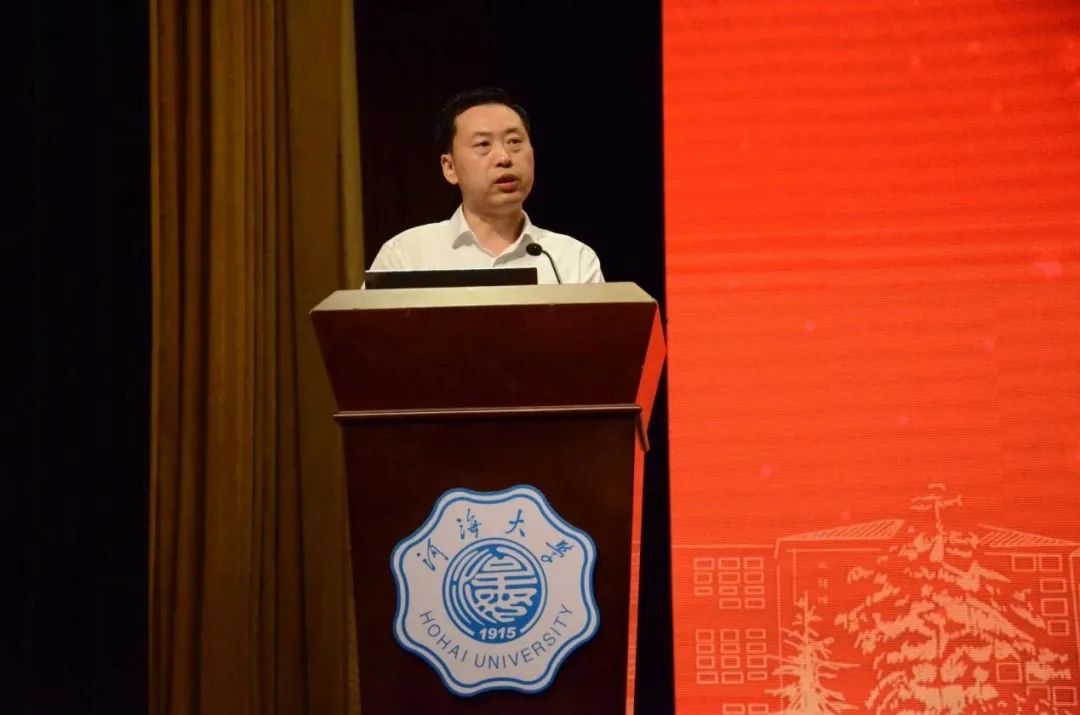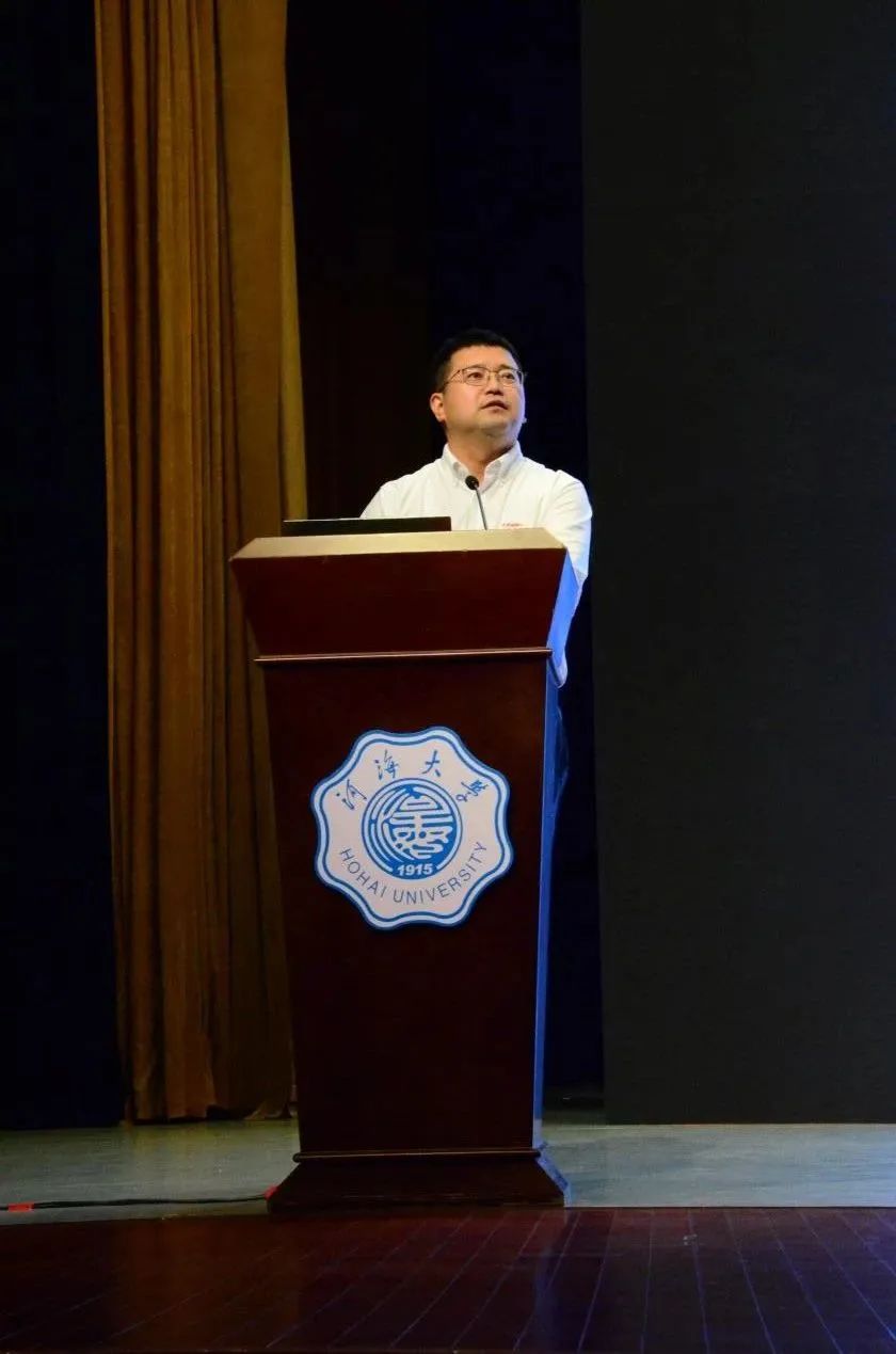 南京南瑞继保电气有限公司李九虎总经理作为杰出校友代表致辞。“不同的校园,同样的河海情”,李总经理深切地讲述了他在河海大学的七载求学时光。母校深厚的文化底蕴和老师的谆谆教诲使他掌握了丰富的专业知识,提升了分析问题、解决问题的能力,更懂得了为人做事的道理。