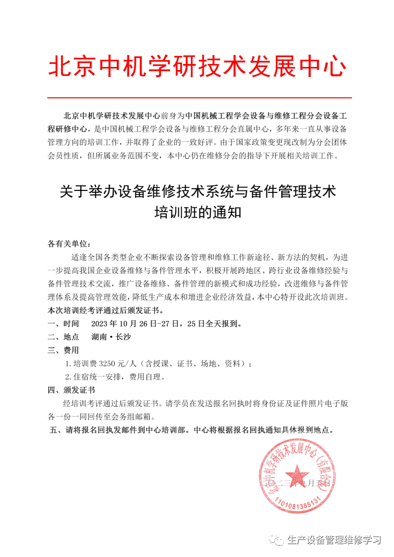 附:设备维修技术系统与备件管理技术培训班报名回执表