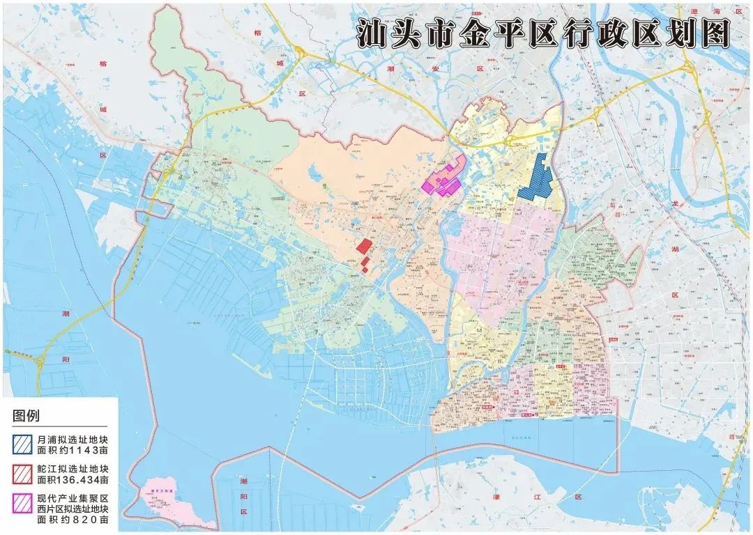 由鮀江鮀济经联社划留地片区、现代产业集聚区月浦片区和现代产业集聚区西片区三个地块组成