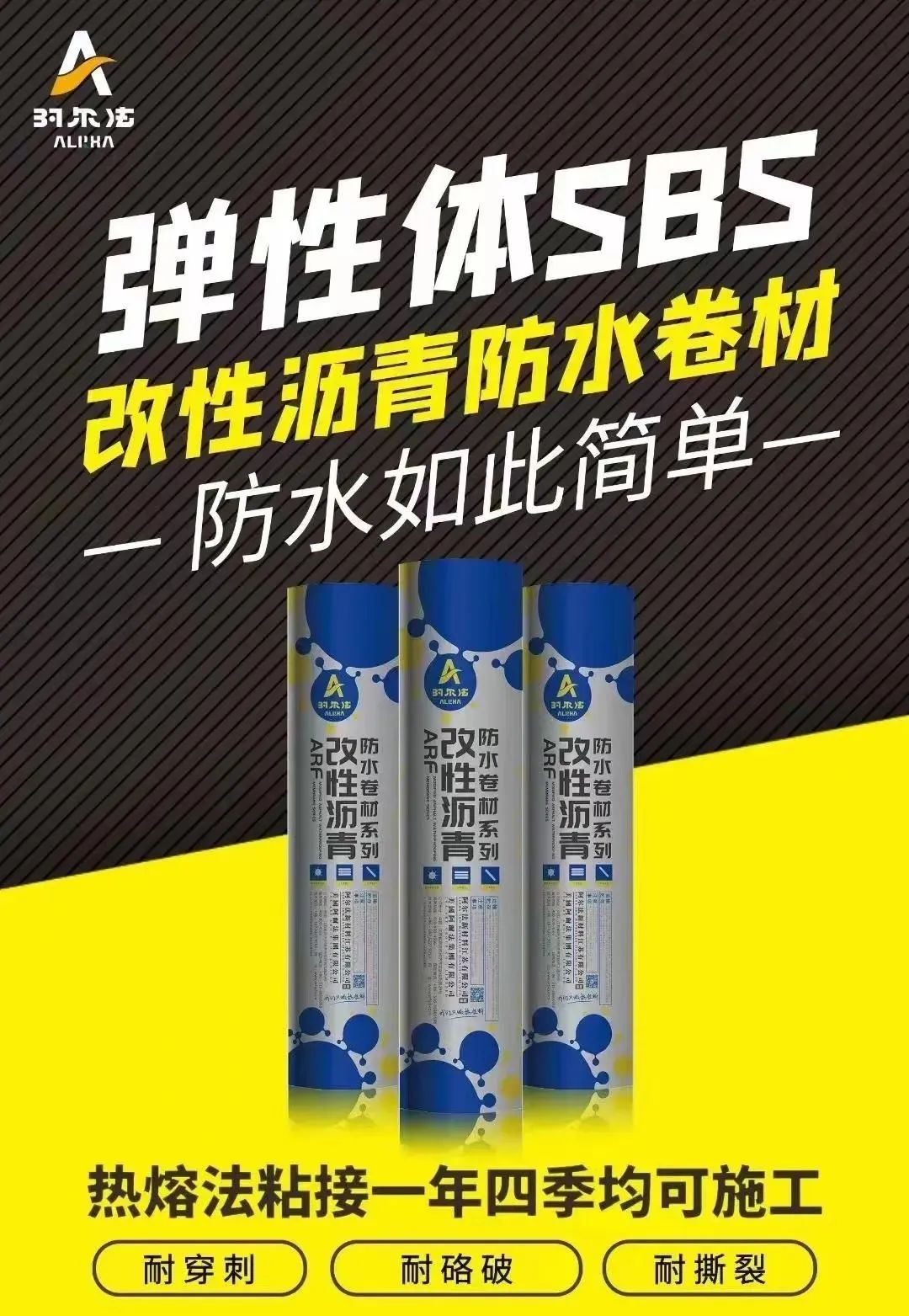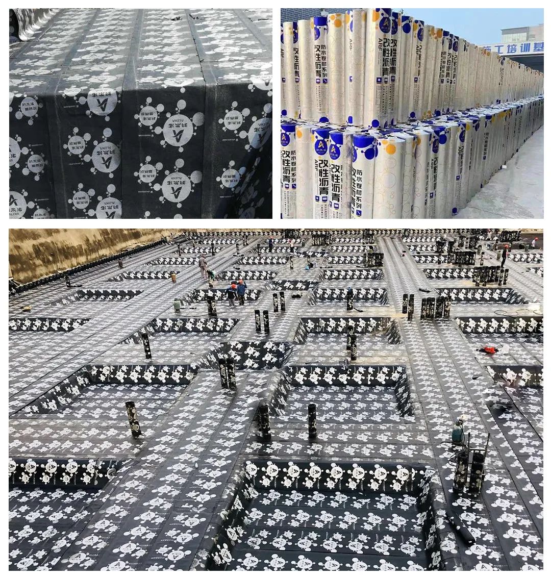 本次工程使用阿尔法弹性体(SBS)/塑性体(APP)改性沥青防水卷材