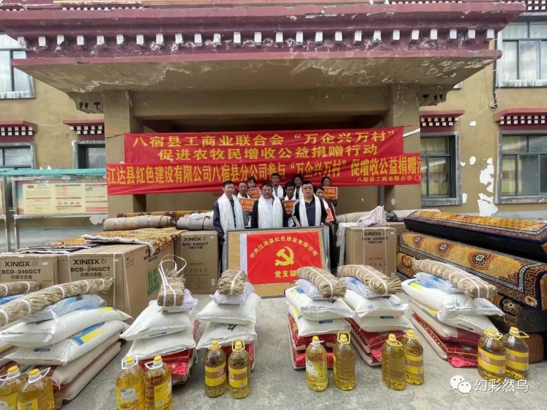 八宿县四季富氧大酒店、江达县红色建设有限公司八宿分公司2家爱心企业,通过此次活动,共为然乌镇9个行政村18户贫困群众捐赠大米、面粉、食用油、茶砖、冰柜、卡垫等生活物资和现金,共计价值约6万余元。