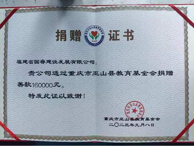 2023年9月8日,我会理事胡永奎为响应家乡教育发展的号召,自发向巫山县教育基金会捐赠16万元用于改善抱龙镇幼儿园校园景观工程和河梁初中教室书柜项目。以提高家乡学子的学习环境,表达对家乡教育事业的关心,助力巫山教育高质量发展。