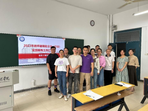为加强教师企业实践成果,加快“双师型”教师队伍的建设,将企业、行业的要求在教育教学工作中有机结合起来。信息工程学院网络通信教研室4名教师分别赴江西新简硕科技有限公司和思创数码科技股份有限公司开展为期一个月的暑期实践锻炼, 于9月7日上午在教10栋409教室分享赴企业实践锻炼成果和体会,网络通信教研室全体教师与会。