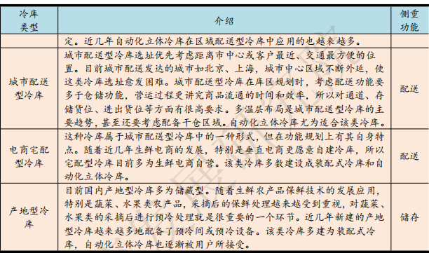 城配型冷链仓库、枢纽型冷链仓库、生产型冷链仓库三种,具体功能