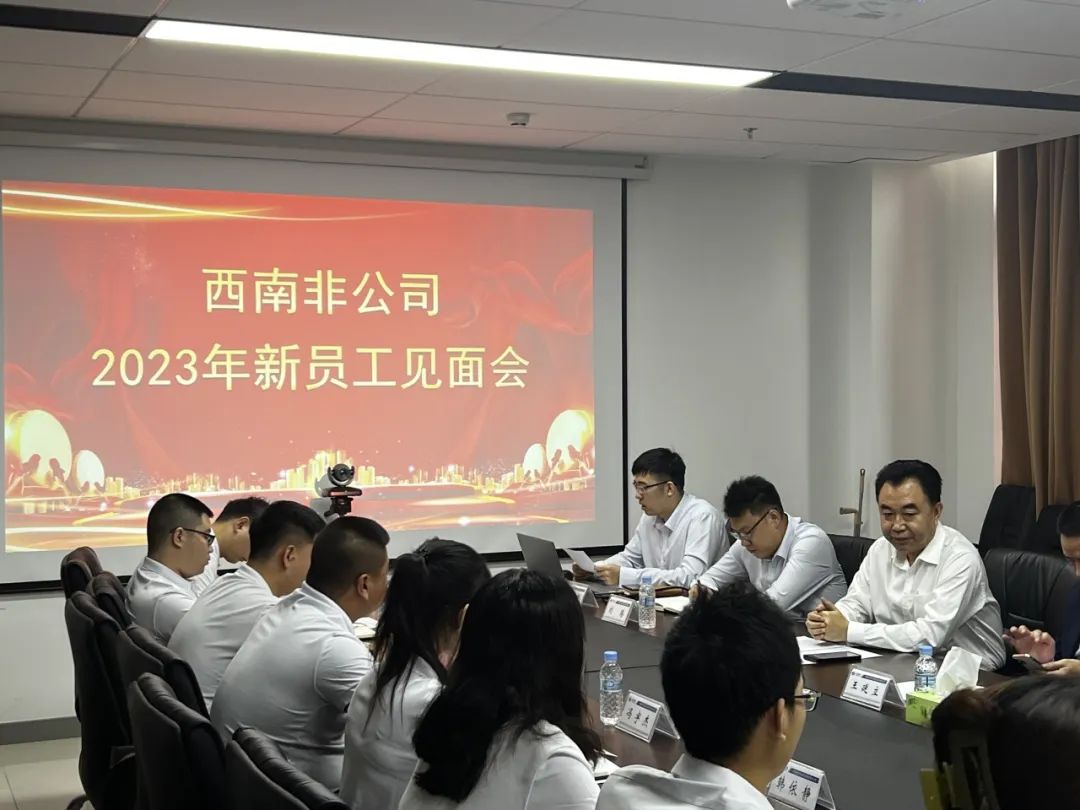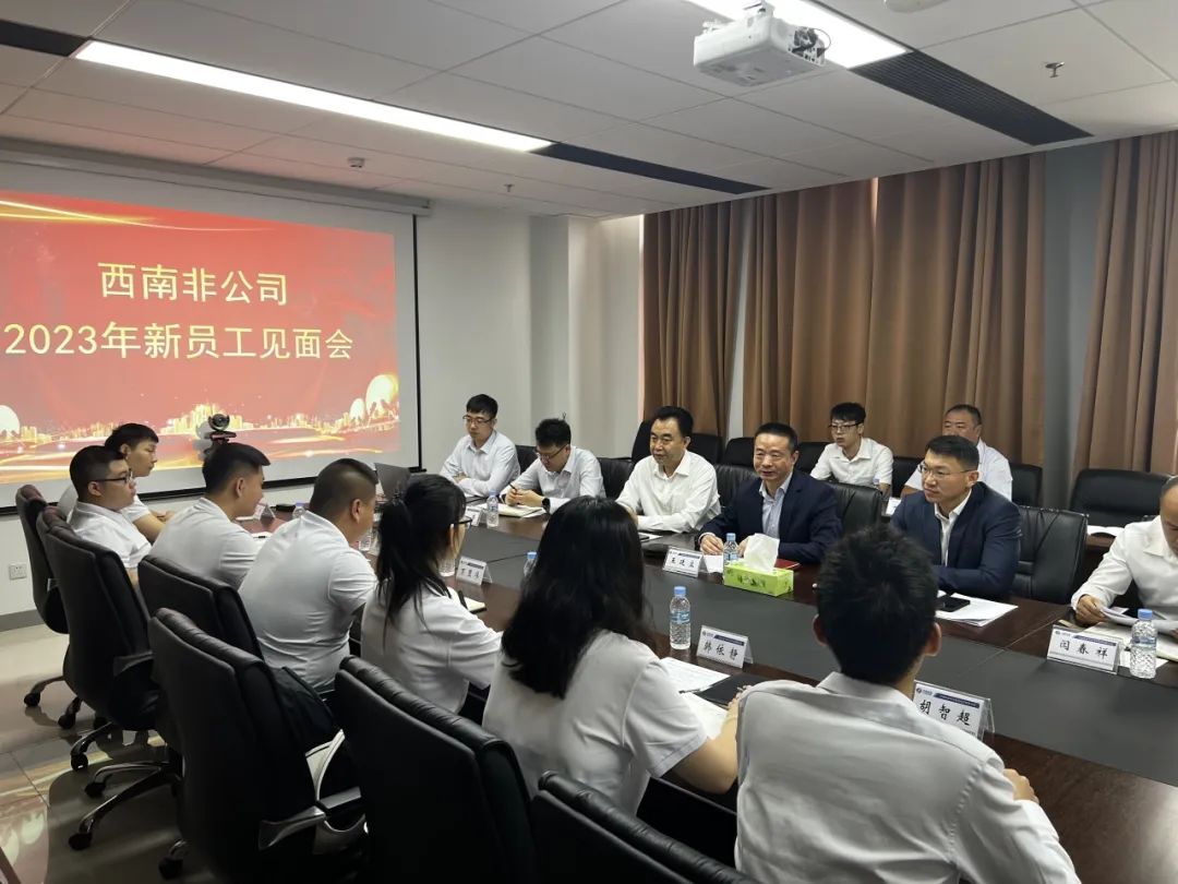 往届优秀员工代表冀晓越分享了自己的海外工作经验,并衷心祝愿新员工们能够早日成为有担当、有能力,奋力拼搏、敢为人先的新时代电建人;新员工代表冯宇杰在发言中郑重承诺,在今后的工作中,所有新员工将会不断学习进取,早日褪去青涩,尽快转变角色,融入集体,与分公司共同前行,为西南非公司的发展贡献自己的力量。