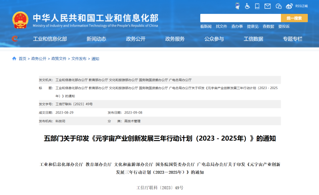 近日,工业和信息化部、教育部、文化和旅游部、国务院国资委、国家广播电视总局办公厅联合印发《元宇宙产业创新发展三年行动计划(2023-2025年)》(下文简称《行动计划》)。