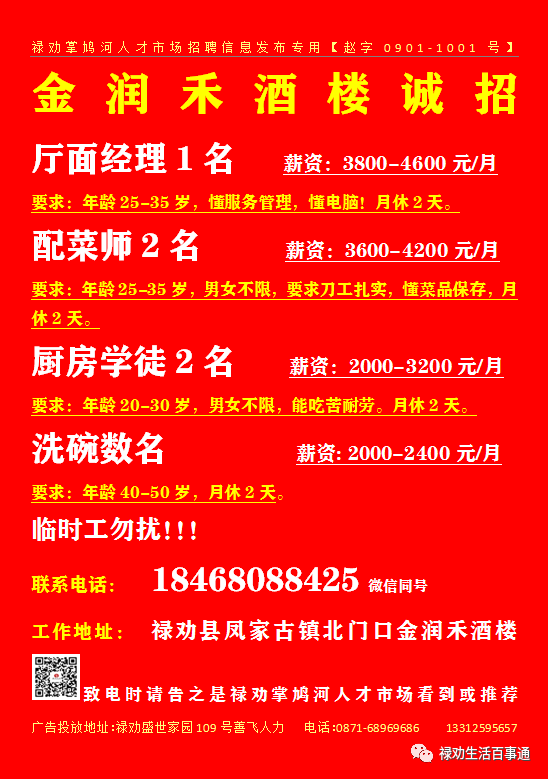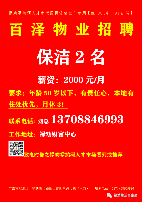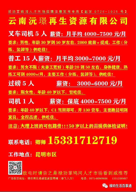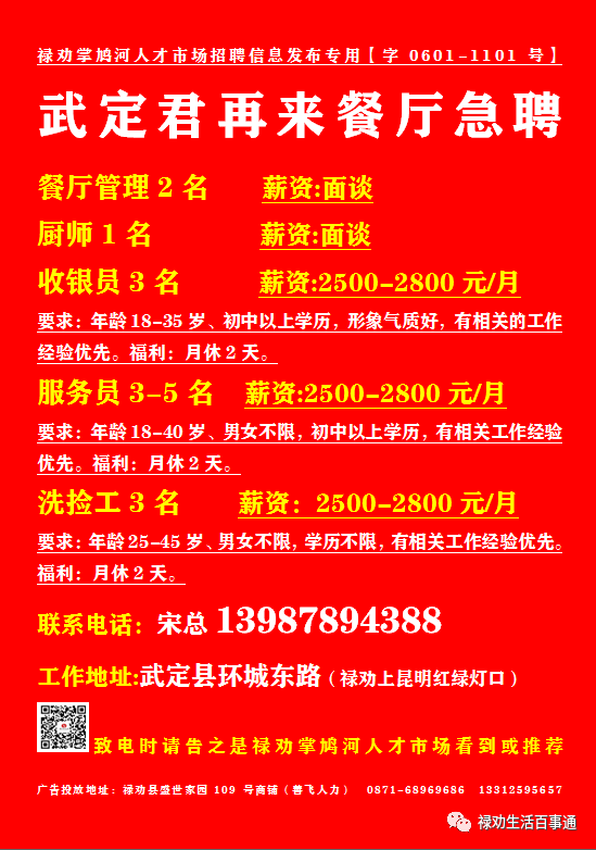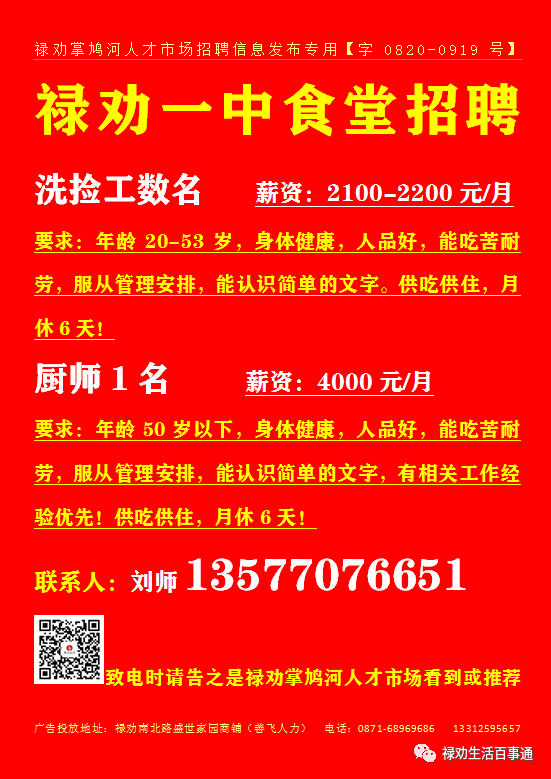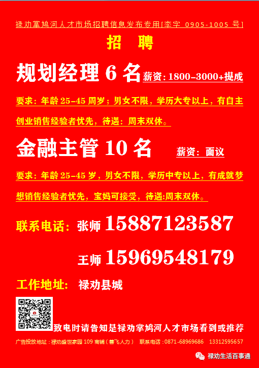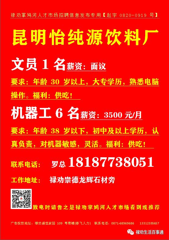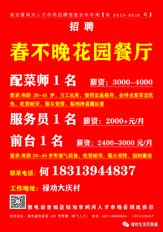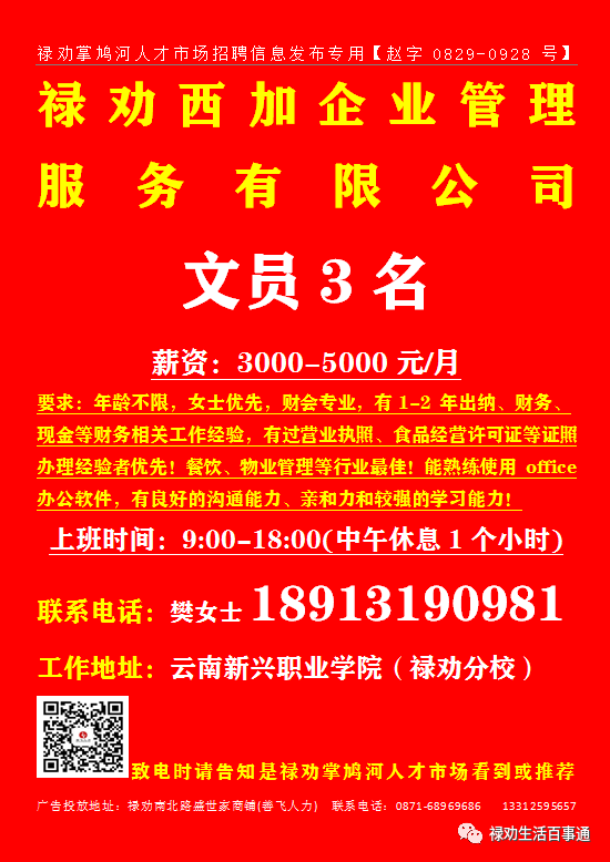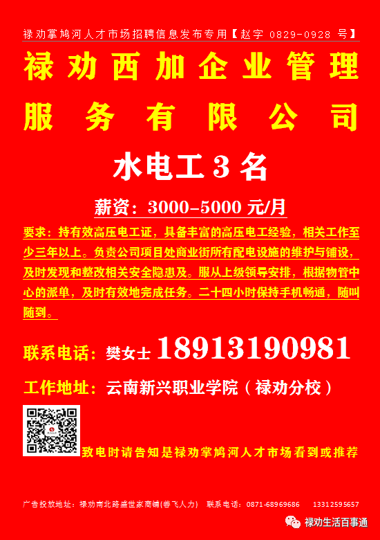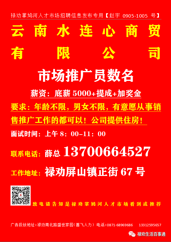 欢迎关注禄劝掌鸠河人才市场微信咨询