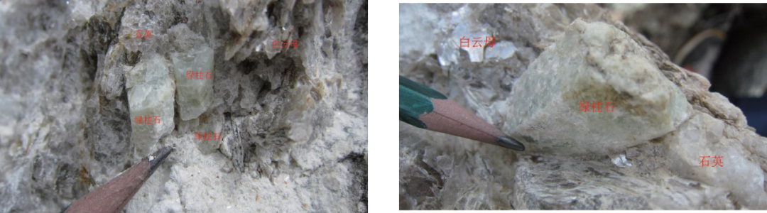 图17 绿柱石花岗伟晶岩中绿柱石晶形产出形态
