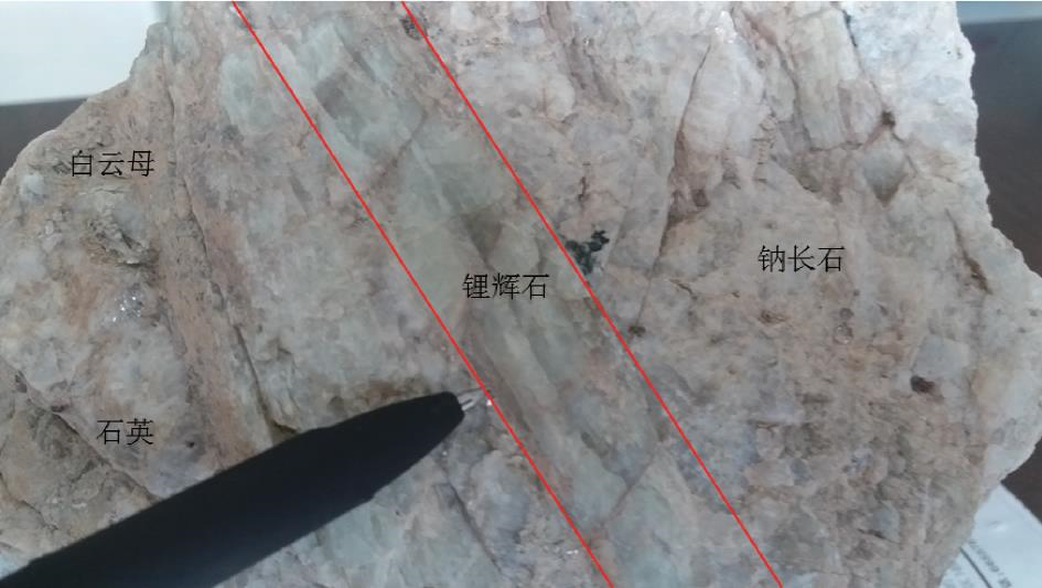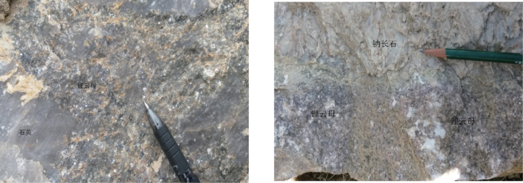 图15 锂辉石花岗伟晶岩中锂辉石、石英产出形态