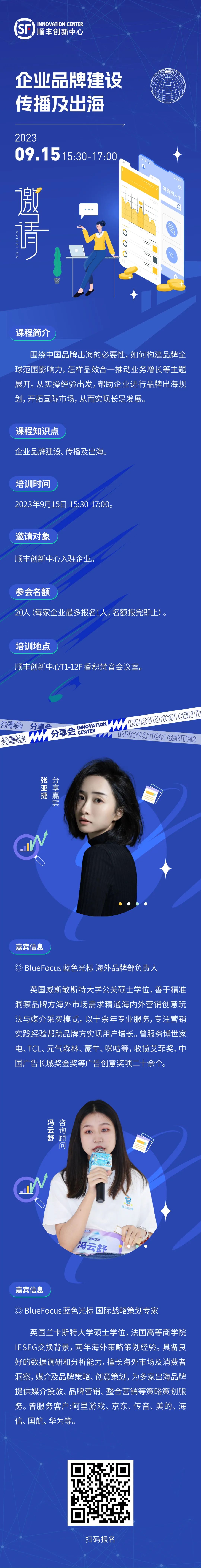 9月15日, 顺丰创新中心企业专题培训“企业品牌建设、传播及出海”即将精彩开讲。培训将围绕着中国品牌出海的必要性、如何构建品牌全球范围影响力、怎样品效合一推动业务增长等几个主题展开分享交流。