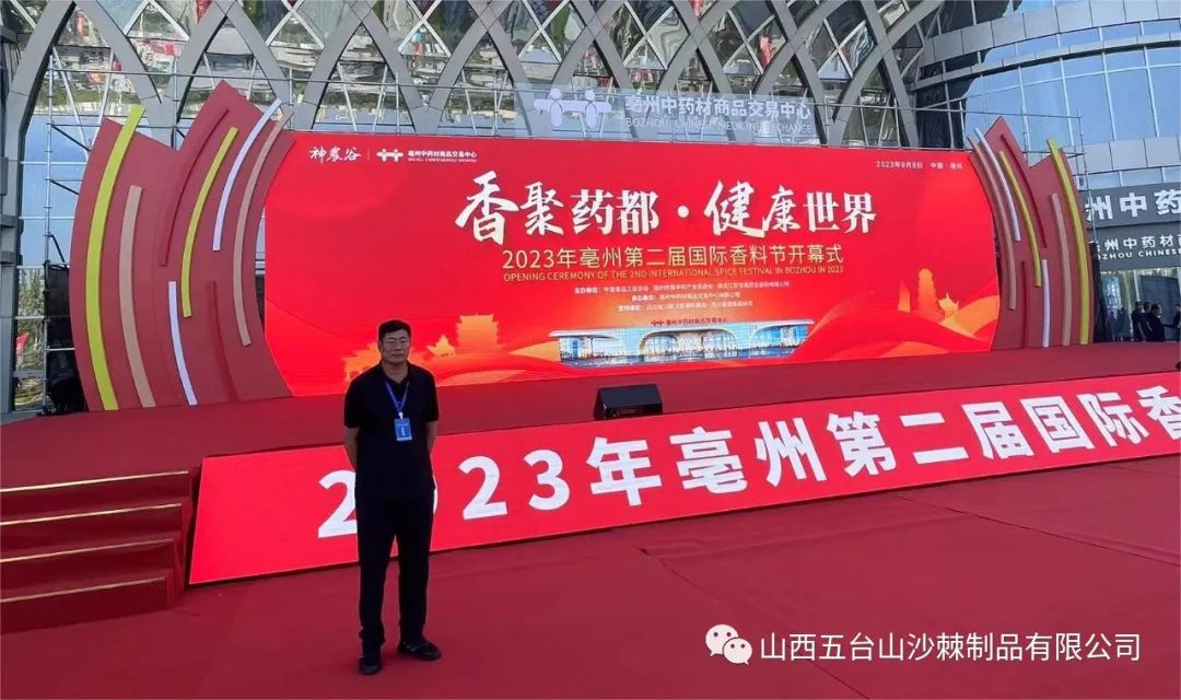 亳览天下,药会全球。2023年9月8日—10日,2023年国际(亳州)中医药博览会暨第二届国际香料节在药都亳州盛大举办。山西五台山沙棘制品有限公司董事长赵志侃、总经理苏春香等一行4人参加了盛会。