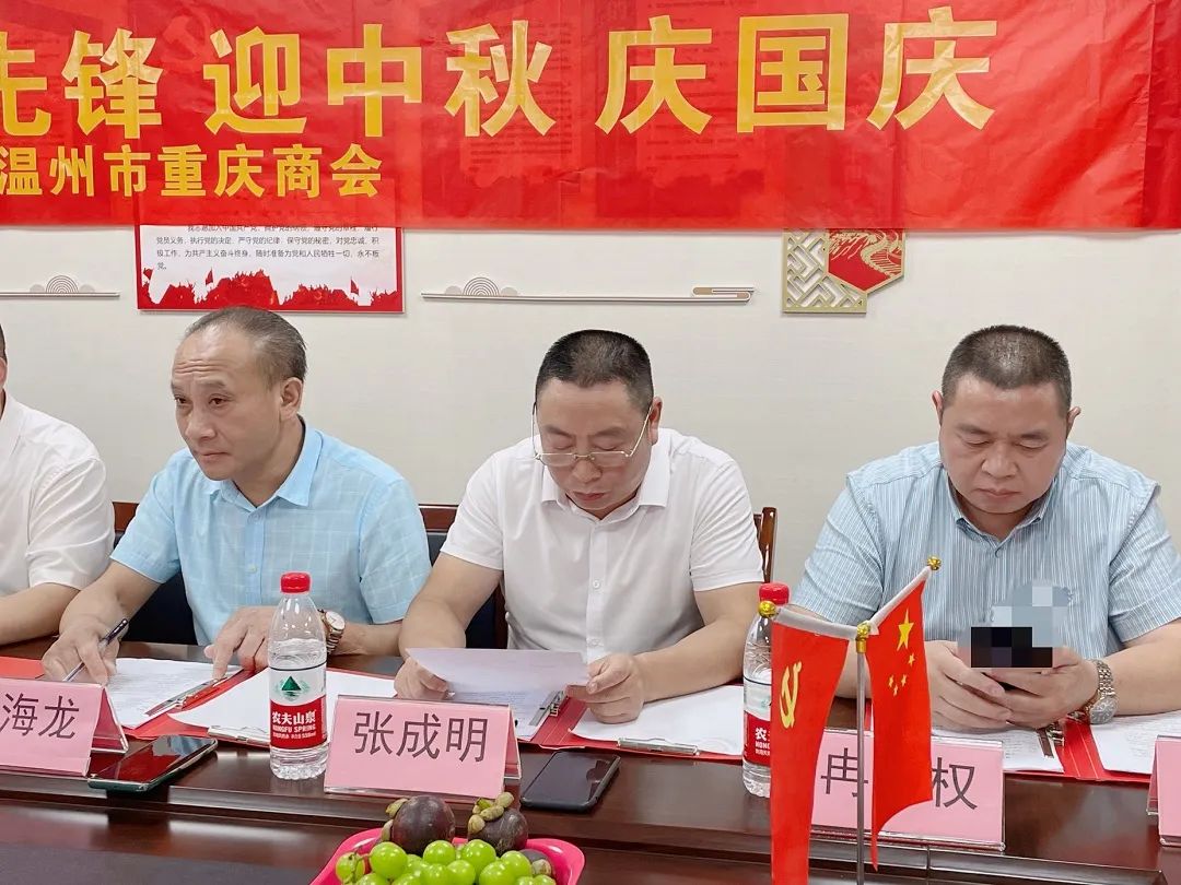 会长刘小林,执行会长余海龙、张成明;秘书长周蓉;荣誉会长王政;常务副会长/工会主席冉小权;常务副会长胡春波、张智、朱胜银,党支部书记兼执行秘书长张莉珍,副会长朱尚明、张春秋、程军、陈燚、唐承俊、陈小宾、李维娟、冉隆洪、华永春、余静,监事严小琴,副秘书长/鹿城片区组长李家春、副秘书长/瑞平片区组长吴蕴财、新城片区副组长梁大伟以及商会党员等30人参加会议;会议由执行会长/本期轮值会长余海龙主持。