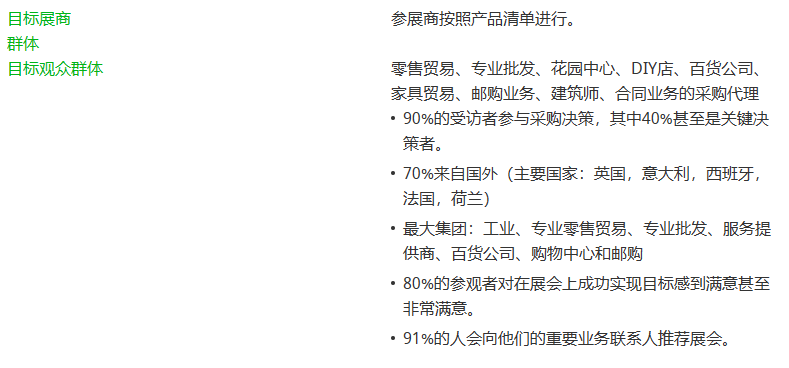 在展会中, 参展商可以展示他们的产品和服务,并与来自世界各地的户外用品和园艺行业的专业人士进行交流和商务洽谈。