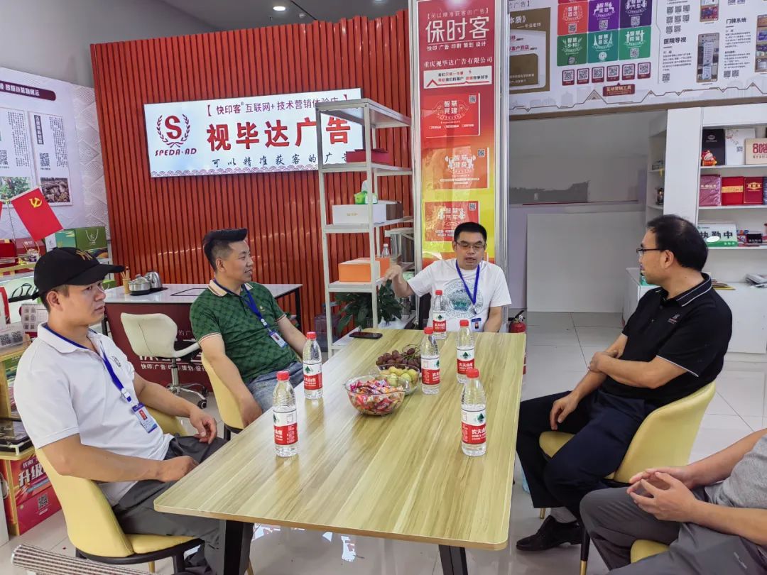 重庆视毕达广告有限公司负责人肖前进介绍公司的经营情况。重庆视毕达有限公司是一家有别于传统广告宣传的公司,他们更多地是以数字宣传为媒介,线上线下同时开展广告宣传。