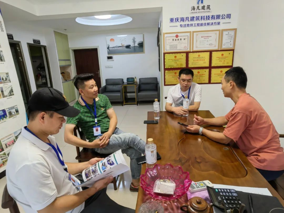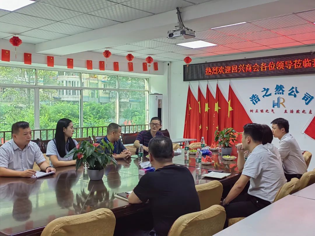 执行会长吴孝海、监事长、法律顾问黄海卿、中国银行回兴支行行长吕文斌、二组轮值会长走访重庆汇盛园林景观设计工程有限公司
