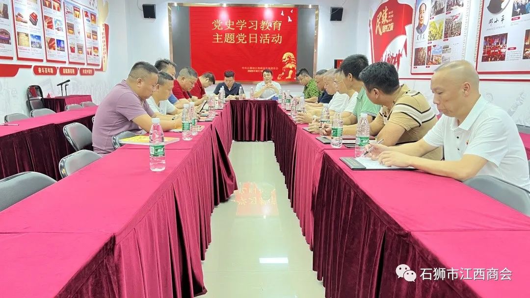 9月10日下午,中共石狮市江西商会支部委员会召开党史学习教育主题党日活动。参会人员:龚高、李福清、桂丽华、江锋、梅民龙、张样生、胡良敏、吴继维、肖新华、黄仁明、王万福、高大寨、倪春辉、钟华、胡笑波、钟长发、乐秀平。