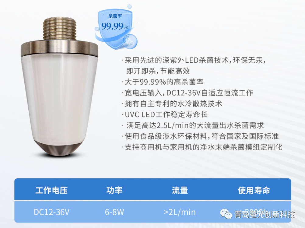 青岛萤光紫外消杀产品主要包括空气杀菌、表面杀菌、水杀菌、医疗杀菌等系列产品。公司拥有专业的博士后团队,专注于紫外杀菌应用的研究,经过多年深耕紫外行业,公司获得多项国家发明和实用新型专利。目前多款杀菌模组类产品已经投入市场。更多详细内容可以浏览公司网站www.qdyingguang.com联系公司索取或者关注微信公众号。