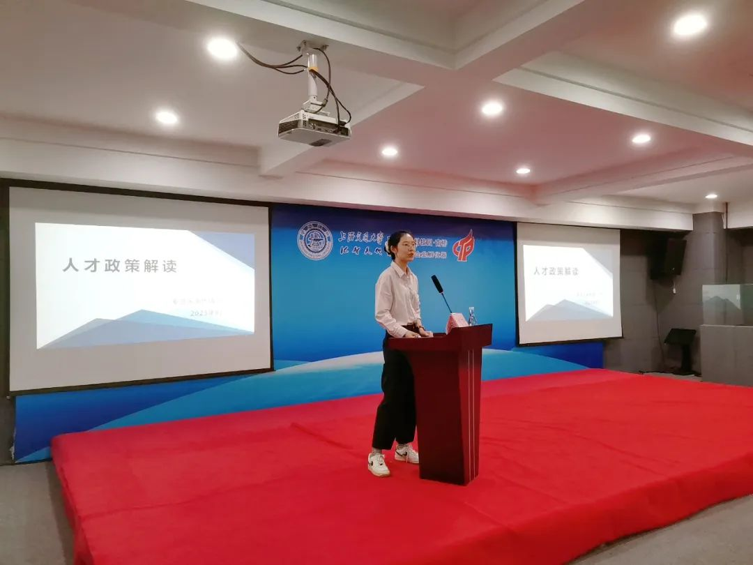 本次宣讲活动特邀南桥镇人才办副主任戎英为现场企业对奉贤区人才政策做详细解读,戎老师分别从人才落户类、人才激励类、人才培训类三大方面入手,并着重介绍了人才引进落户、留学回国人员落户、应届毕业生落户、五个新城人才发展政策。