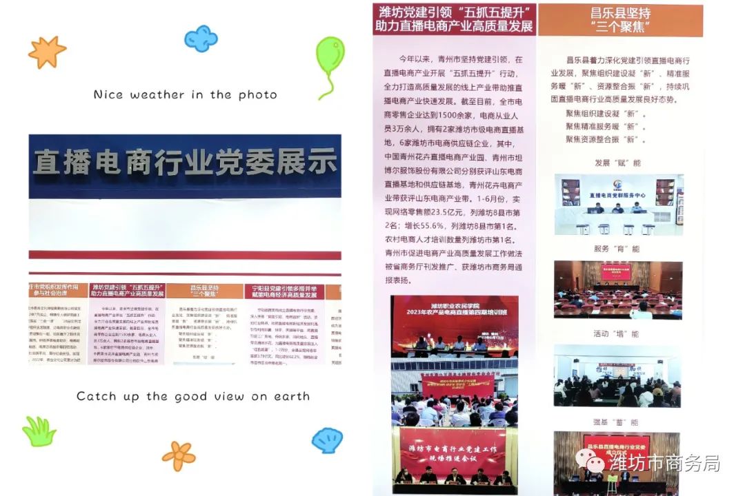 此外,“潍坊党建引领五抓五提升,助力直播电商产业高质量发展”和“昌乐县坚持三个聚焦”经验做法,入选“党建引领直播电商发展展示专区”,充分展示了我市党建引领直播电商发展成果。