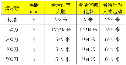 参考对比表