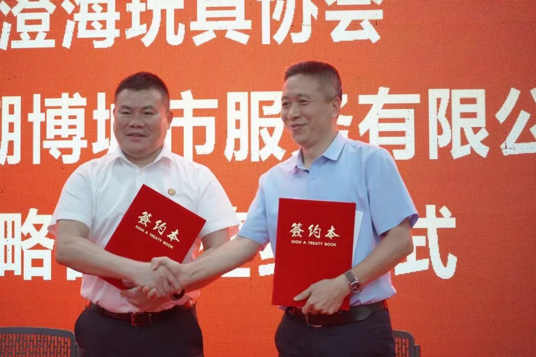 签约仪式由澄海玩具协会主办,华兴银行汕头分行协办。仪式上,区人民法院与澄海玩具协会签约加强玩具行业知识产权司法保护协作框架协议,澄海玩具协会与汕头市潮博城市服务有限公司、澄海广播电视台、广东华兴银行股份有限公司签约战略合作协议,与中认标联国际认证(广东)有限公司汕头市分公司、澄海区润工润滑油商行、广东万捷检测技术有限公司、澄海傲翔食品商行、汕头市潮玺文化传播有限公司、澄海启唐酒店签约合作协议。