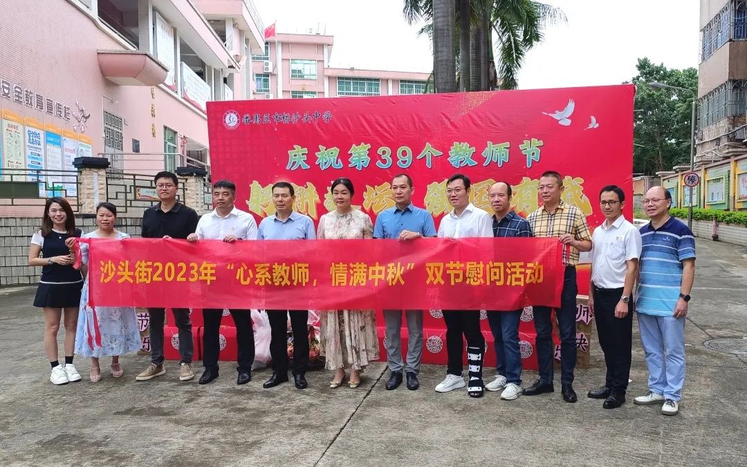 值此喜庆时节,2023年9月11日,大罗塘珠宝首饰商会联同沙头街商会、沙头街慈善会随沙头街道办党工委书记黄海滨,党工委副书记、办事处主任孔宪坚,党工委委员、武装部部长蔡进明等领导先后到沙头中学、沙头中心小学及沙头街中心幼儿园,开展教师节暨中秋节双节慰问活动。沙头街商会会长梁子豪,大罗塘珠宝首饰商会常务副会长代表苏琮洋,沙头街慈善会代表及爱心企业出席了本次活动,向辛勤耕耘在工作岗位上的老师们致以节日祝贺和亲切的慰问。