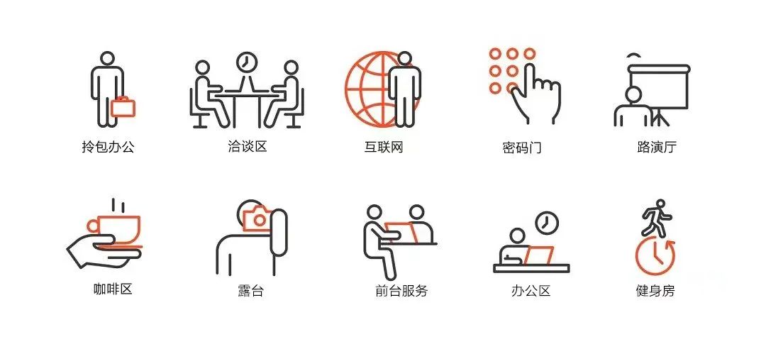 前台接见 办公家具 复印打印 传真办公 宽带WIFI 会议室洽谈室 视频远程会议 咖啡厅茶水间休闲区 中央空调空气净化器自动售卖机微波炉冰箱 卫生间 配套办公清洁 茶点免费 咖啡饮用水