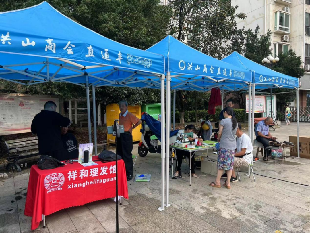 此外,洪山商会直通车还特设剪发、磨刀、缝补等贴心服务,让居民在忙碌的生活中也能轻松解决日常事务。居民们纷纷前来体验,感受到了商会直通车带来的便利和温暖。