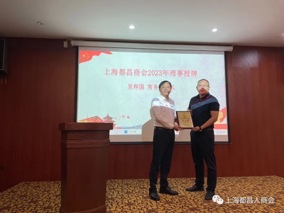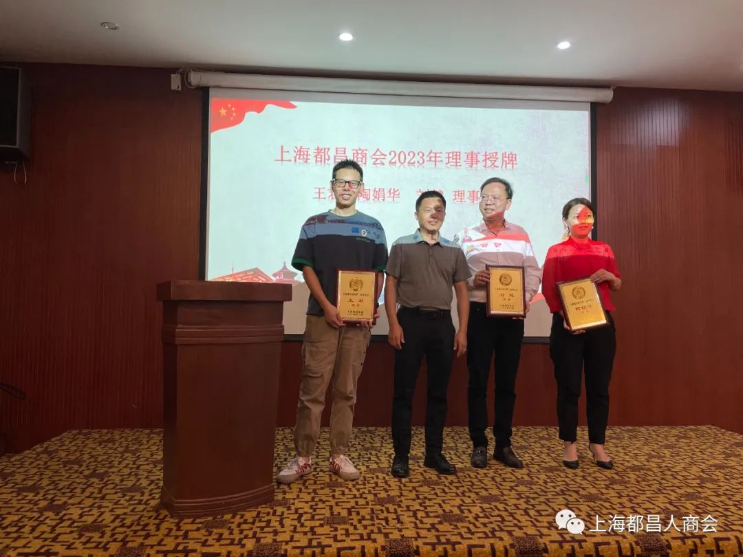 同时,本次会议为新加入商会理事进行了授牌仪式,对为商会做出贡献的理事进行了表彰。会长刘国强为常务副会长吴和国进行授牌;执行会长秦朗为副会长江亲廷进行授牌;常务副会长黄森平为理事刘健、陶娟华、王君进行授牌。名誉会长熊志刚对商会做出突出贡献的会长及理事颁发了荣誉证书,受到表彰的人员分别是:黄森平、秦朗、王华峰、江亲廷、刘健。